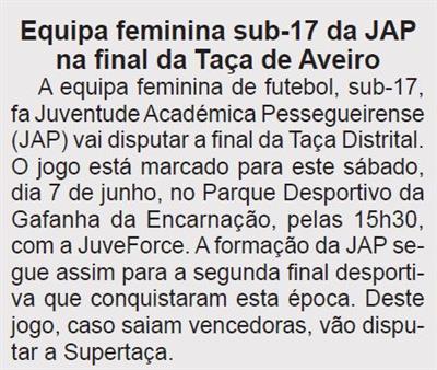 BV-N.º 1250 (1.ª quinzena jun. 2025), p. 3-Equipa feminina sub-17 da JAP na final da Taça de Aveiro.JPG