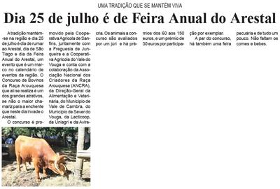 Dia 25 de julho é de Feira Anual do Arestal : uma tradição que se mantém viva / Beira Vouga