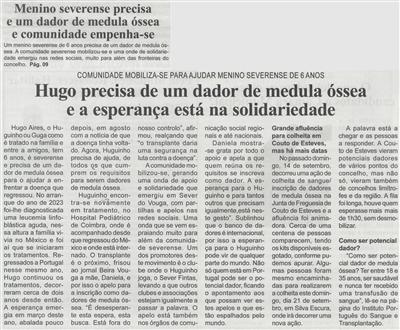 Hugo precisa de um dador de medula óssea e a esperança está na solidariedade : comunidade mobiliza-se para ajudar menino severense de 6 anos / Beira Vouga