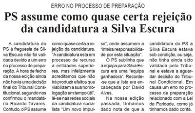 PS assume como quase certa rejeição da candidatura a Silva Escura : erro no processo de preparação / Beira Vouga