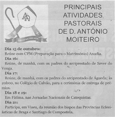 Principais atividades pastorais de D. António Moiteiro / Correio do Vouga