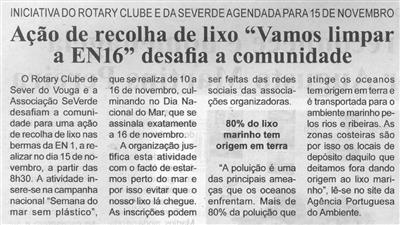 Ação de recolha de lixo "Vamos limpar a EN16" desafia a comunidade : iniciativa do Rotary Clube e da SeVerde agendada para 15 de novembro / Beira Vouga