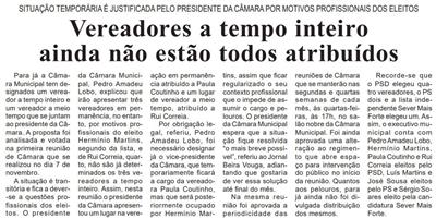 Vereadores a tempo inteiro ainda não estão todos atribuídos : situação temporária é justificada pelo Presidente da Câmara por motivos profissionais dos eleitos / Beira Vouga
