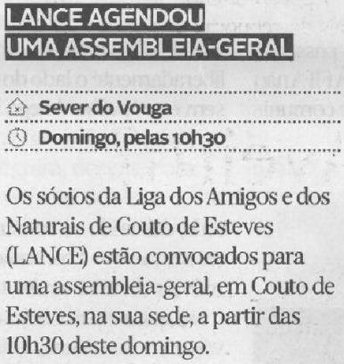 LANCE agendou uma assembleia-geral / Diário de Aveiro