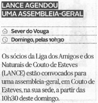 LANCE agendou uma assembleia-geral / Diário de Aveiro