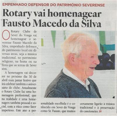 Rotary vai homenagear Fausto Macedo da Silva : empenhado defensor do património severense / Beira Vouga