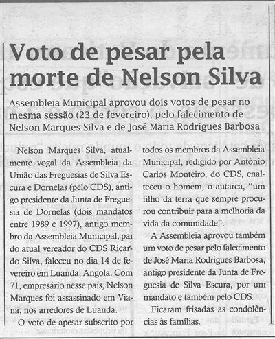 Voto de pesar pela morte de Nelson Silva / Terras do Vouga