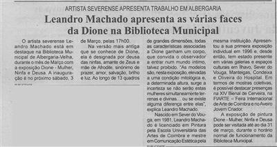 BV-1.ªmar.'18-p.6-Leandro Machado apresenta as várias faces da Dione na Biblioteca Municipal : artista severense apresenta trabalho em Albergaria.jpg