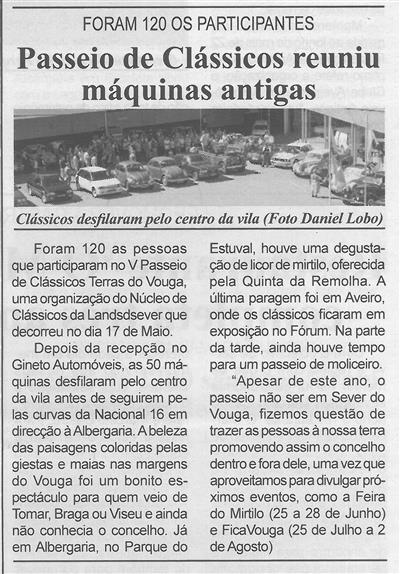 Passeio de Clássicos reuniu máquinas antigas : foram 120 os participantes : clássicos desfilaram pelo centro da vila / Beira Vouga; [fotografia de] Daniel Lobo