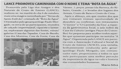 LANCE promoveu caminhada com o nome e tema Rota da Água : fim de semana recheado de atividades para todos os gostos : Couto de Esteves / Mário Silva
