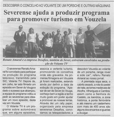 Severense ajuda a produzir programa para promover turismo em Vouzela : descobrir o concelho ao volante de um Porsche e outras máquinas / Beira Vouga
