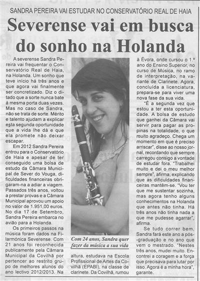 BV-2.ªset.'15-p.2-Severense vai em busca do sonho na Holanda : Sandra Pereira vai estudar no Conservatório Real de Haia.jpg