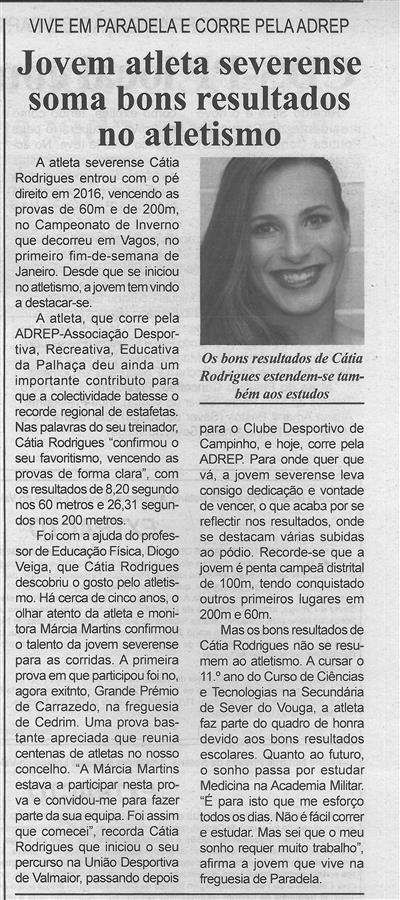 BV-2.ªjan.'16-p.5-Jovem atleta severense soma bons resultados no atletismo : vive em Paradela e corre pela ADREP : os bons resultados de Cátia Rodrigues estendem-se também aos estudos.jpg