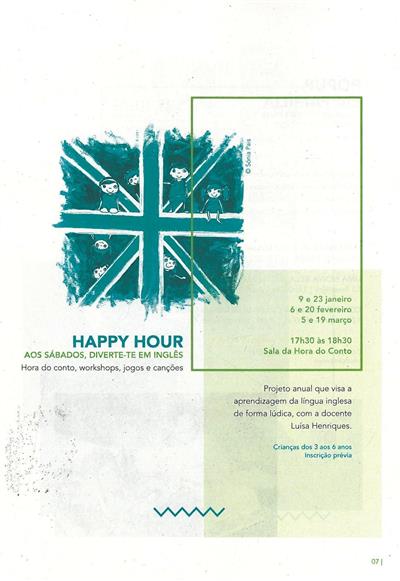 Happy Hour : aos sábados diverte-te em inglês : hora do conto : workshops : jogos e canções / Câmara Municipal de Sever do Vouga