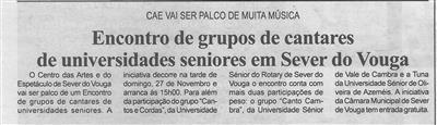 Encontro de grupos de cantares de universidades seniores em Sever do Vouga : CAE vai ser palco de muita música / Beira Vouga