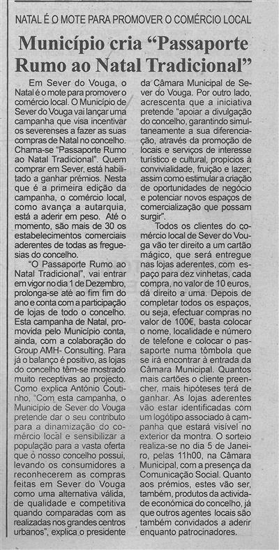 Município cria Passaporte Rumo ao Natal Tradicional : Natal é o mote para promover o comércio local / Beira Vouga