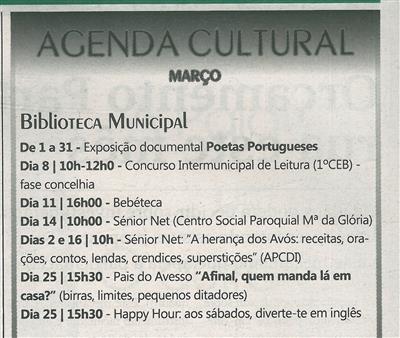 Biblioteca Municipal : Agenda Cultural : março / Terras do Vouga