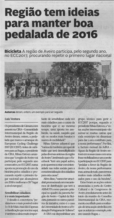 DA-21abr.'17-p.3-Região tem ideias para manter boa pedalada de 2016 : bicicleta : a Região de Aveiro participa pelo segundo ano, no ECC2017, procurando repetir o primeiro lugar nacional.jpg