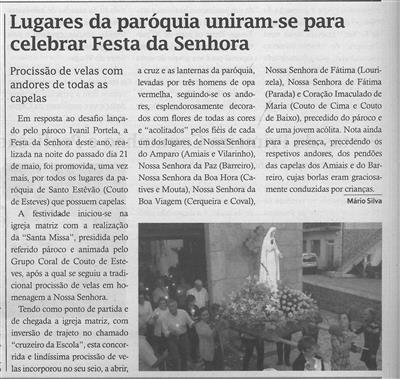 Lugares da paróquia uniram-se para celebrar Festa da Senhora : procissão de velas com andores de todas as capelas / Mário Silva