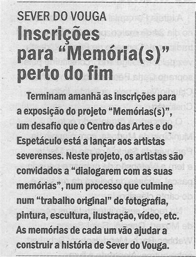 Inscrições para Memórias perto do fim / Correio do Vouga