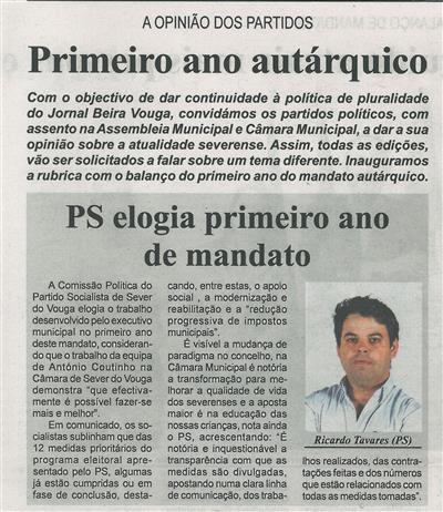 Primeiro ano autárquico : a opinião dos partidos : PS elogia primeiro ano de mandato / Beira Vouga