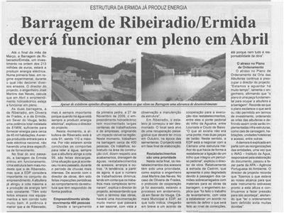 Barragem de Ribeiradio-Ermida deverá funcionar em pleno em abril : estrutura da Ermida já produz energia / Beira Vouga