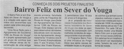 Uma nova sede para o Agrupamento de Escuteiros 1286 de Rocas do Vouga : projeto Bairro Feliz ; Proposta dos Bombeiros Voluntários de Sever do Vouga : projeto Bairro Feliz : melhores condições de segurança ; O Programa Bairro Feliz é uma iniciática do Pingo Doce