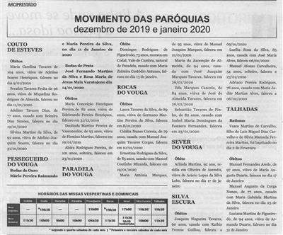 Movimento das Paróquias : dezembro de 2019 e janeiro 2020 / Terras do Vouga