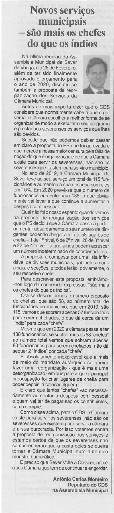 Novos serviços municipais : são mais os chefes do que os índios / António Carlos Monteiro