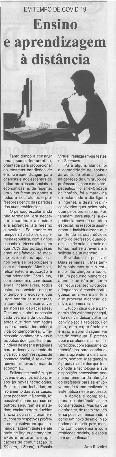 Ensino e aprendizagem à distância : em tempo de Covid-19 / Ana Silveira