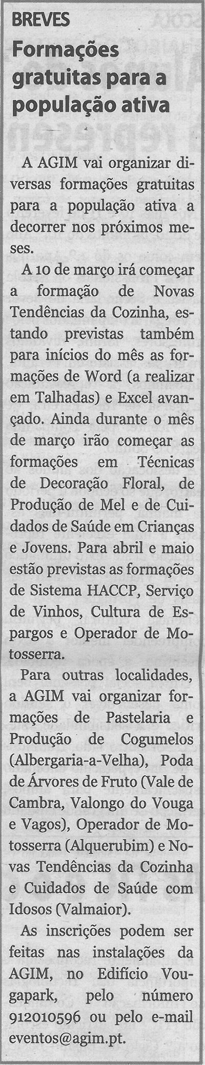 Formações gratuitas para a população ativa / Terras do Vouga