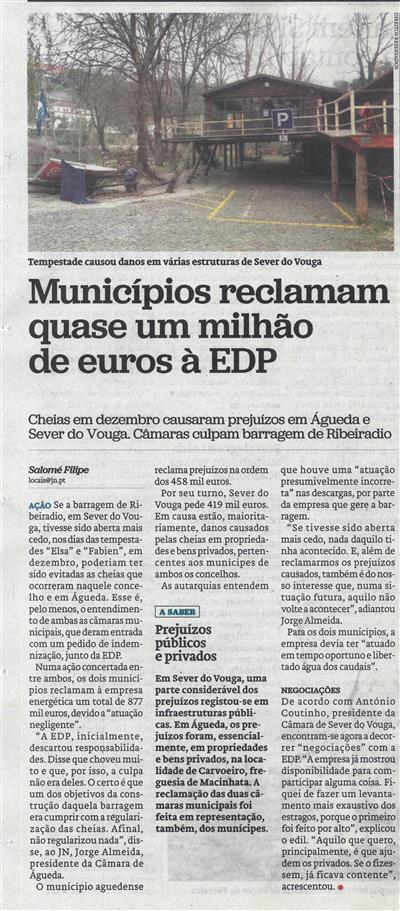 JN-30set.'20-p.26-Municípios reclamam quase um milhão de euros à EDP : cheias em dezembro causaram prejuízos em Águeda e Sever do Vouga : Câmaras culpam Barragem de Ribeiradio.jpg