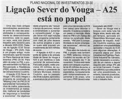 Plano Nacional de Investimentos 20-30 (PNI) ; Plano de Recuperação e Resiliência (PRR) ; Ligação Sever - A25 já tem previstos 45 milhões
