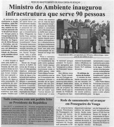 Ministro do Ambiente inaugurou infraestrutura que serve 90 pessoas : rede de abastecimento de água chega às Bouças / Beira Vouga