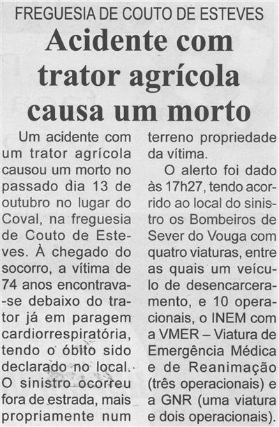 Acidente com trator agrícola causa um morto : Freguesia de Couto de Esteves / Beira Vouga