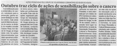 Outubro traz ciclo de ações de sensibilização sobre o cancro : ações promovidas pelo Grupo de Voluntariado Comunitário de Sever do Vouga / Beira Vouga