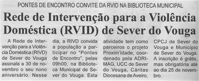 Rede de Intervenção para a Violência Doméstica (RVID) de Sever do Vouga : Pontes de Encontro, convite da RVID na Biblioteca Municipal / Beira Vouga