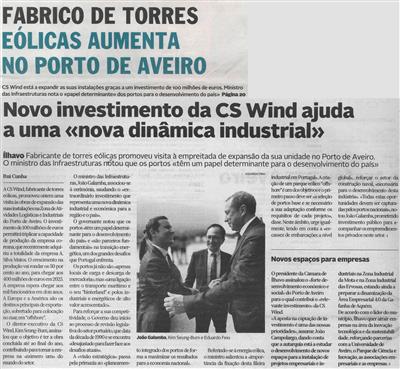 Fabrico de Torres Eólicas aumenta no Porto de Aveiro ; Novos espaços para empresas