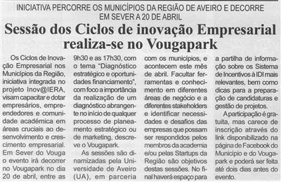 Sessão dos Ciclos de Inovação Empresarial realiza-se no Vougapark : iniciativa percorre os municípios da região de Aveiro e decorre em Sever a 20 de abril / Beira Vouga