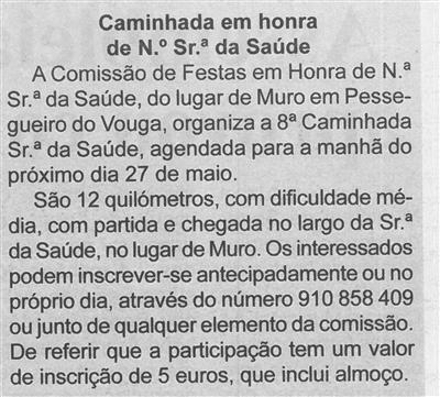 8.ª Caminhada Sr.ª da Saúde : 27 de maio