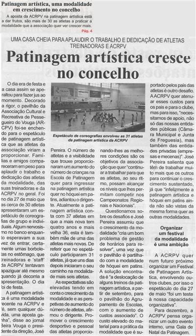 Patinagem artística cresce no concelho : uma casa cheia para aplaudir o trabalho e dedicação de atletas, treinadores e ACRPV / Beira Vouga