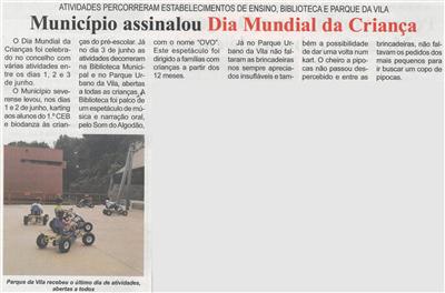 Município assinalou Dia Mundial da Criança : atividades percorreram estabelecimentos de ensino, biblioteca e Parque da Vila / Beira Vouga