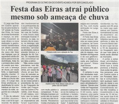 Festa das Eiras atrai público mesmo sob ameaça de chuva : programa do último dia do evento acabou por ser cancelado / Beira Vouga