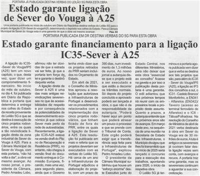 BV-N.º 1214 (2.ª quinzena out. 2023), p. 1 e 3-Estado garante financiamento para a ligação IC35-Sever à A25.jpg