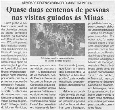 Quase duas centenas de pessoas nas visitas guiadas às minas : atividade desenvolvida pelo Museu Municipal / Beira Vouga