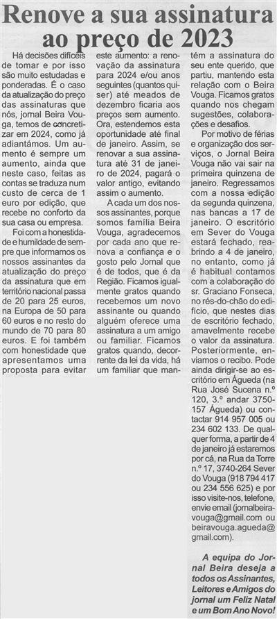 Renove a sua assinatura ao preço de 2023 / Beira Vouga