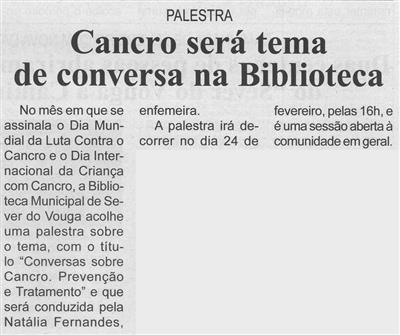 Cancro será tema de conversa na Biblioteca : palestra / Beira Vouga