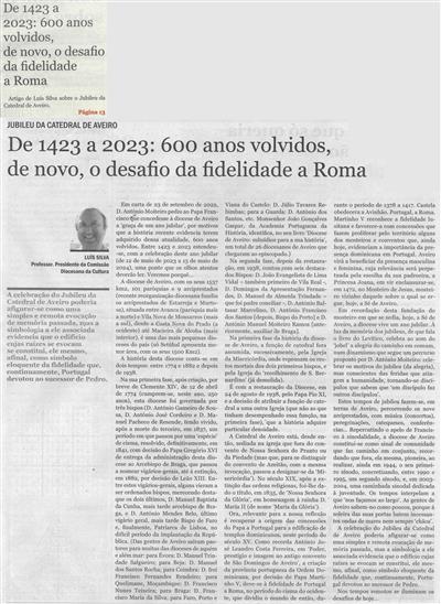 De 1423 a 2023 : 600 anos volvidos, de novo, o desafio de fidelidade a Roma : Jubileu da Catedral de Aveiro / Luís Silva