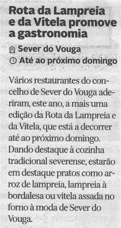 Rota da Lampreia e da Vitela promove a gastronomia : Sever do Vouga / Diário de Aveiro