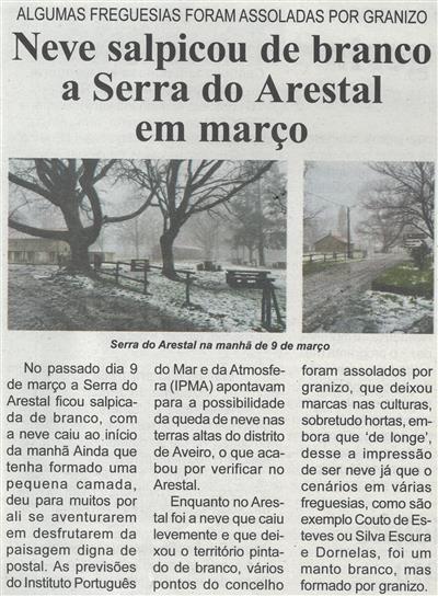 Neve salpicou de branco a Serra do Arestal em março : algumas freguesias foram assoladas por granizo / Beira Vouga
